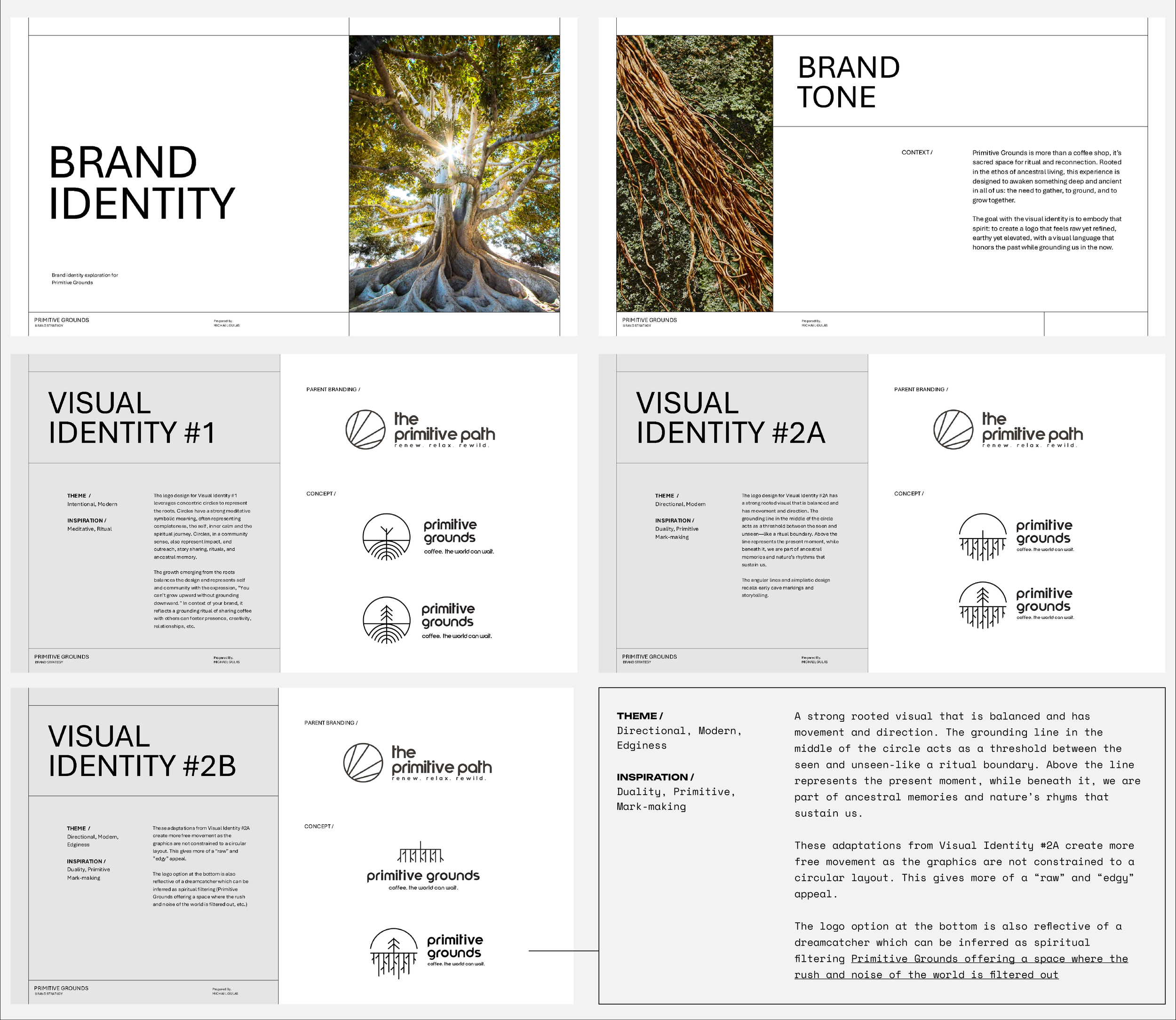 Primitive Grounds is a holistic coffee and wellness brand born from Primitive Path, a company rooted in mindfulness and spiritual balance. The challenge was to craft a visual identity that felt like an organic extension of the parent brand—minimal, grounded, and quietly powerful—while giving Primitive Grounds its own sense of soul.
